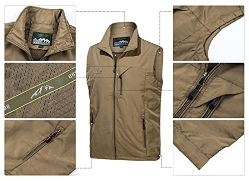 AIEOE Gilet da uomo Softshell Giacca antivento Gilet multi tasche Gilet senza maniche Gilet da golf Gilet da lavoro Gilet da pesca Gilet da fotografia Gilet per viaggi campeggio, Marrone, M