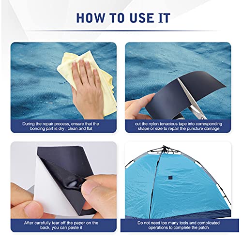 Ampiamente compatibile: la toppa in nylon può essere utilizzata per tutti i tipi di tende, tappeti per cavalli, giacche, tende da sole, gonfiabili, riparare rapidamente e facilmente forature, strappi e altri danni.