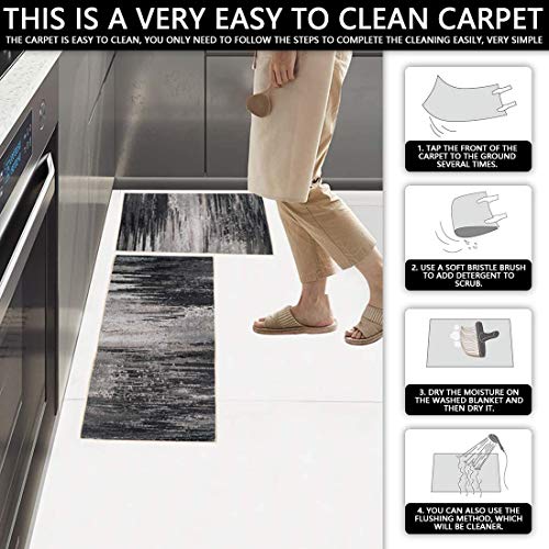 Aiface 2 Pezzi Tappeto Cucina Antiscivolo Lavabile Casa e Cucina, Tappeto Bagno Grigio Tappeto Casa Tappeto Cucina Grigio, Tappeto Lavabile Zerbino Lavabile (Grigio Beige)
