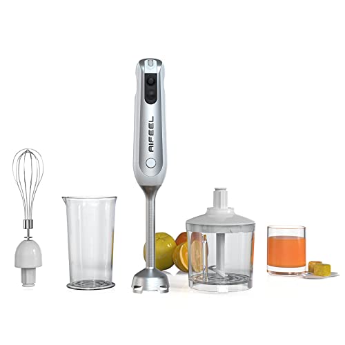 Aifeel Frullatore a Immersione Set 5-in-1, 800 W Minipimer Immersione Antispruzzo con Montalatte, Tritatutto da 500 ml, Bicchiere da 600 ml, Frusta, Robot da Cucina Senza BPA