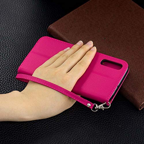 AIFILLE Custodia Galaxy A70 Rosa Brillante Cover Flip a Libro Pelle PU Protettiva Trama di Litchi Design con Funzione Supporto Libretto Portafoglio Donna 360 Gradi Antiurto Protezione Rigida