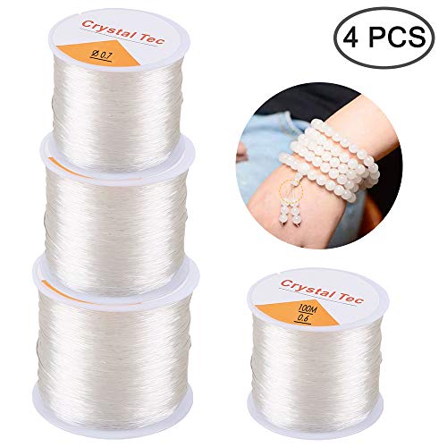 AIFUDA 4 Rotoli 328 FT Chiaro Elastico Fili per Perline, Cordoncini di Cristallo per Braccialetti per Il Fai da Te Perline Braccialetto Creazione di Gioielli (0.6/0.7/0.8/1 millimetro)