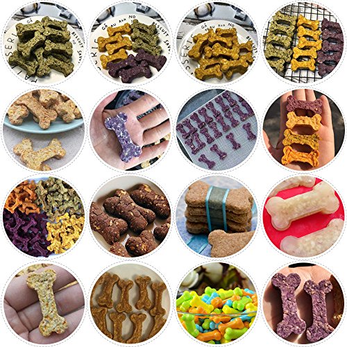 Contenuto della confezione: la confezione include 5 stampi: uno rosso con formine di ossi, due viola con formine di ossi e due rosa con formine di zampa.