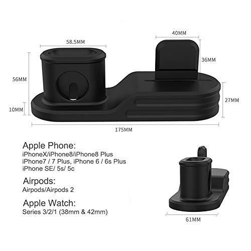 Aifusi supporto di ricarica 3 in 1 per Smart Watch Smart Phone e auricolare, del nero in silicone, caricatore da tavolo