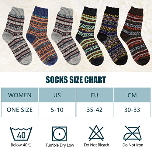 Aiglam Calzini Termici Uomo, 6 Paia di Calzini Uomo di Vitello di Lana di Cotone Caldo Calzini Casual con Motivo a Righe Traspiranti per Interni all'Aperto, 35-40 EU