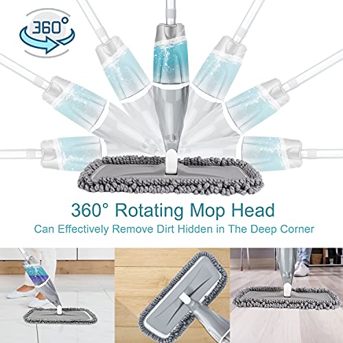 Aiglam Spray Mop 640ml, Mop in Microfibra con spruzzatore Acqua, Scopa di Spazzole Rotanti e Spazzolone con Spray Polverizzatore Contiene 2 Panni Casuali in Microfibra e Una Pennello (640 ml)