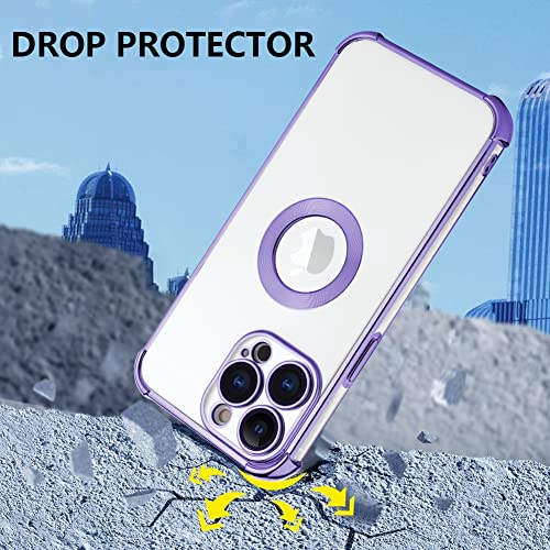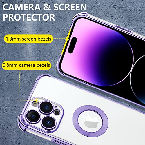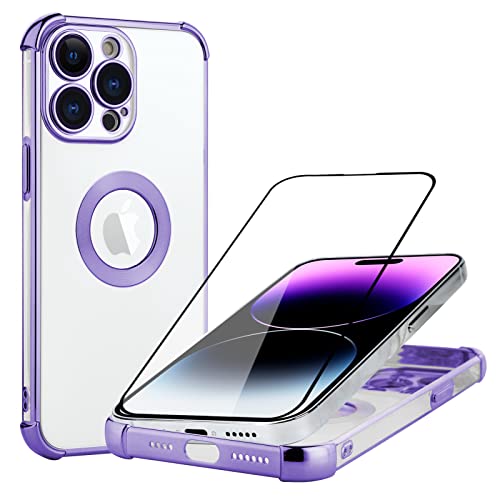 AIGOMARA 3 in 1 Cover per iPhone 14 Pro 6.1 Pollici, Custodia con 1 Pellicola Vetro Temperato, 1 Pellicola Fotocamera, Placcatura Trasparente Antiurto Silicone TPU Protettiva Case Viola