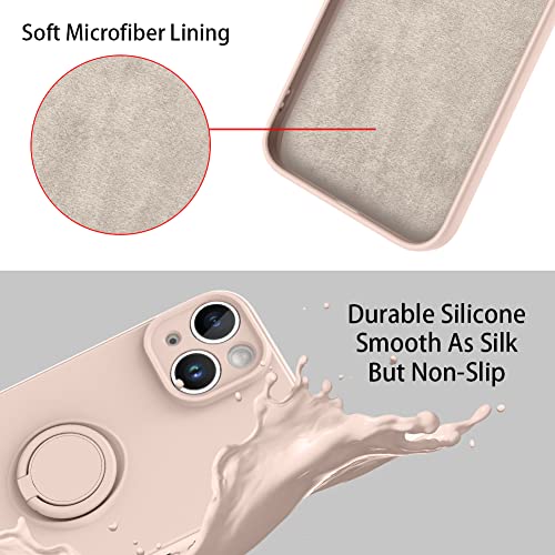AIGOMARA Silicone Cover per iPhone 14 6.1", Custodia iPhone 14 con 360° Regolabile Supporto Anello, Morbido Silicone Liquido AntiGraffio Antiurto Protezione Ultra-Sottile Cover iPhone 14, Rosa