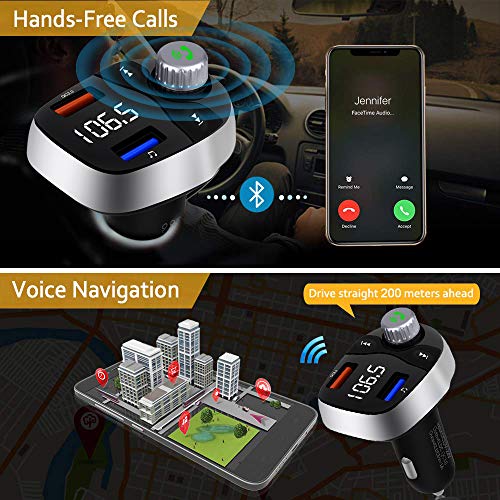 Aigoss Trasmettitore FM Bluetooth 5.0 Adattatori con Porta USB e Quick Charge Porta (QC 3.0), Auto MP3 Lettore, Vivavoce Car Kit Transmitter con Microfono Incorporato,Supporto TF/USB