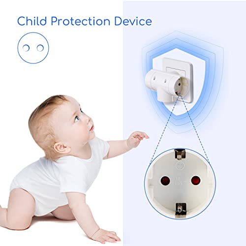 【Presa Multipla Salvaspazio】Include 3 spine di alimentazione CA in stile tedesco,adatteper la maggior parte dei paesi europei,più dispositivi elettronici,piccoli elettrodomestici e altre spine possono essere collegati all'elettricità contemporaneamente senza occupare spazio.