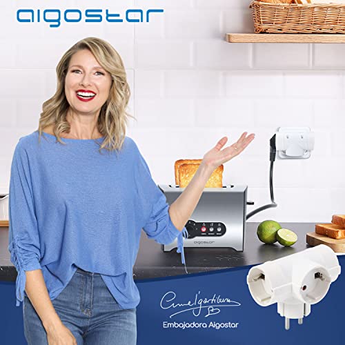 Aigostar Adattatore con 3 Presa Shuko,Presa Multipla con Protezione Bambini,Adattatore Schuko 2P+T 16 A Combinata Standard Tedesco e Francese,Bianco