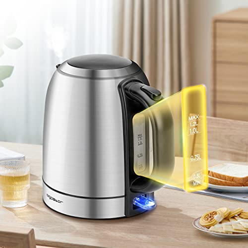Aigostar Bollitore Elettrico, Mini Bollitore Acqua da Viaggio 1,2 litri e 2200W Boiler Piccolo Elettrico Portatile in Acciaio Inox, Spegnimento automatico, Filtro Rimovibile, Senza BPA.