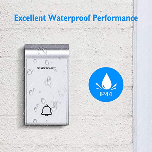 Aigostar - Campanello Senza Fili, Campanello Wireless Impermeabile IP44 da Esterno, Indicatore LED, Portata 150m con 36 Melodie e 3 Livelli di Volume, 1 Trasmettitore + 2 Ricevitori