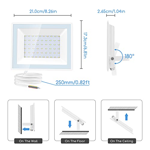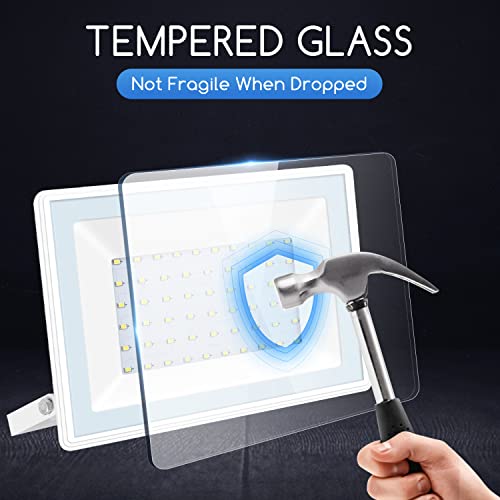 Rotazione di 180°del corpo della lampada e maschera in vetro temperato ad alta resistenza: Faretti esterno led realizzata in vetro temperato rinforzato ad alta trasmittanza, con una buona trasmissione della luce, luce uniforme, impermeabile e non facile da rompere. La staffa di questo proiettore per esterni può essere regolata a 180 gradi e regolare l'angolo di irradiazione di 180°per ottenere un'illuminazione precisa.