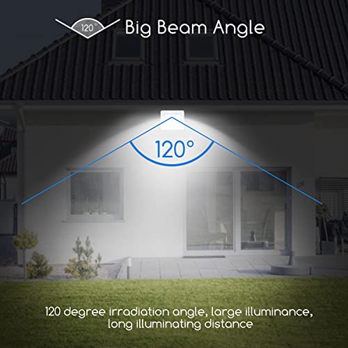 Ampio angolo del fascio di 120°: Faretto da esterno del tipo di lente fornisce un ampio angolo del fascio di 120°con un ampio illuminamento e una lunga distanza di illuminazione può funzionare normalmente indipendentemente da pioggia, neve, caldo o freddo. Inoltre, le perle della lampada ad alta luminosità con efficienza luminosa di lunga durata, uscita stabile, basso decadimento della luce, indice di resa cromatica elevato che può aiutarti a risparmiare energia e risparmio energetico.