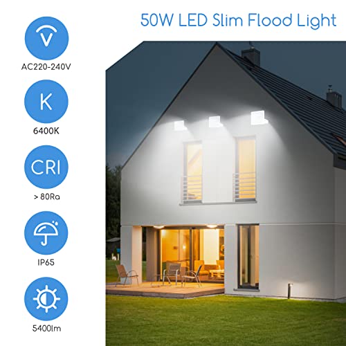 Aigostar Faretto LED Esterno, 50W 6400K Faretto da Esterno, Fari per Esterno 5400LM impermeabile IP65 per cortile, giardino, garage