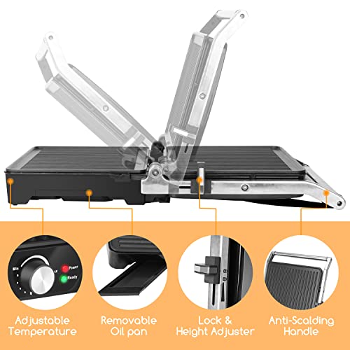 【Piastre antiaderenti e regolatore di temperatura da grandi dimensioni】 Grandi dimensioni 29,5 * 23,5 cm2 per soddisfare la necessità di grigliare tutti i tipi di alimenti contemporaneamente con 180 gradi di apertura. Piastre antiaderenti con intervallo di temperatura 190-230 ℃ consentono di mostrare le vostre abilità culinarie notevolmente.