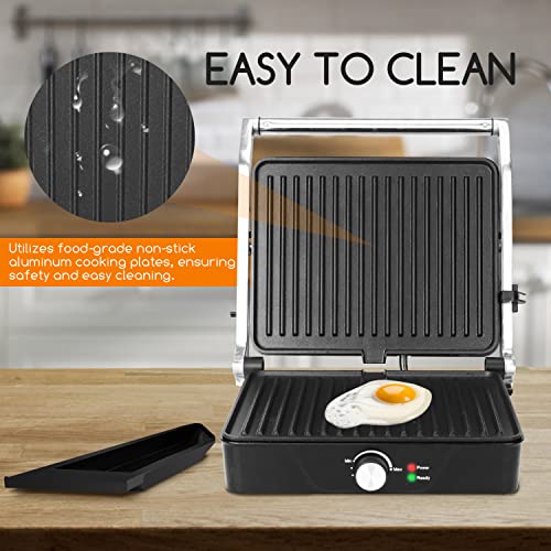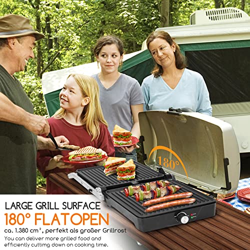 Aigostar Griglia multifunzione per panini maker da 2000W Temperatura regolabile fino a 180° e vassoio raccogli bistecchiera elettrica, pour steak, panini, 2000W