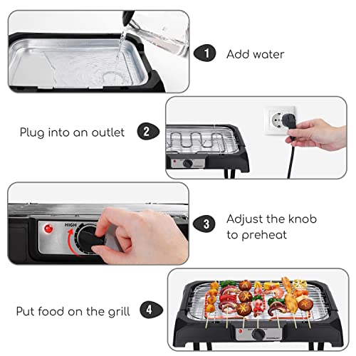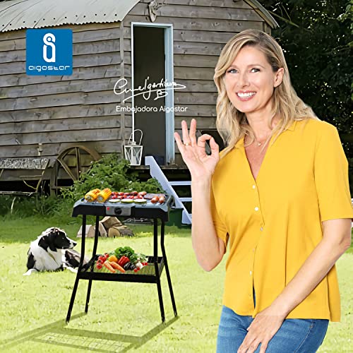 Aigostar Lava Pro - Griglia senza fumo, griglia per barbecue elettrica con piedini e tavolo da esterno. Antiaderente con vassoio rimovibile