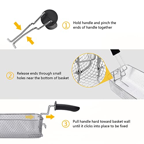 【FRITRICE GRANDE CAPACITÀ】Con la sua grande capacità di 3 litri, la friggitrice è sufficiente per una famiglia di 2-4 persone. I livelli di olio max e min sono contrassegnati sul lato interno del serbatoio dell'olio smaltato. Ideale per preparare patatine fritte, pesce, pollo, ecc.
