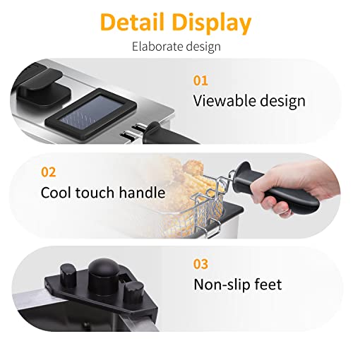 Aigostar Kenny 300QHF Friggitrice Olio da 3 Litri Acciaio Inossidabile 2200 W, timer e termostato. Finestra di visualizzazione e cestello con ganci.