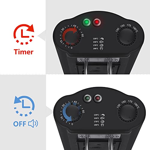 【Timer e temperatura regolabili】La friggitrice è dotata di un timer e di un pulsante di regolazione della temperatura. La temperatura può essere regolata da 130 ℃ a 190 ℃ e il timer con spegnimento automatico e segnale acustico può essere impostato da 0 a 60 minuti. Indicatore luminoso per una cottura facile e precisa.