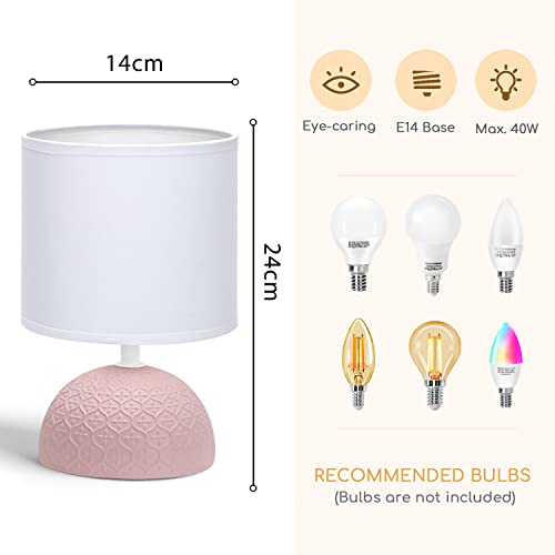 Aigostar - Lampada da Comodino, Moderna Lampada da Tavolo Base in Ceramica Paralume in Stoffa, Attacco E14, 14 * 14 * 24 cm Cavo 1.3 Metri, Design Vintage.