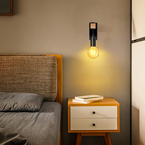 Aigostar Lampada da parete per interni con braccio in legno, Applique da parete per la casa (lampadina non inclusa)