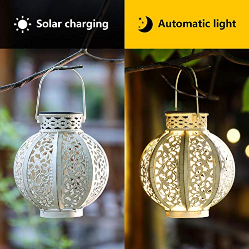 Aigostar Lampada Solare per Giardino ed Esterno in Metallo. Luce Calda 3000K, impermeabile IP44. Lanterna Solare da Esterno Realizzata in Metallo Fustellato,Perfetta da Appoggio o da Appendere.