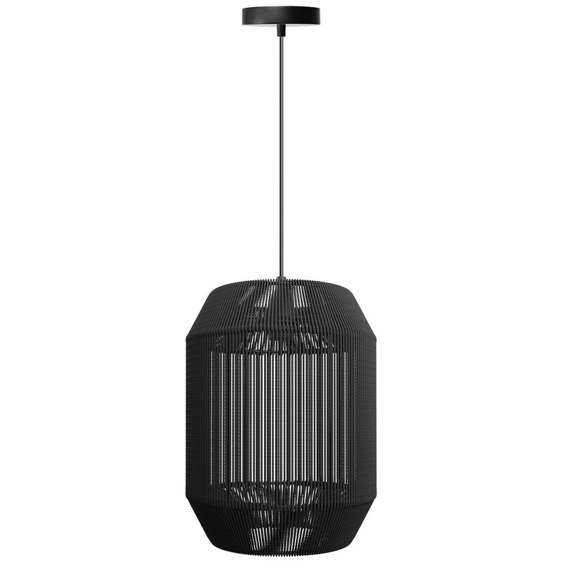 Un lampadario da soffitto è un tipo di apparecchio di illuminazione che si trova appeso al soffitto e consiste solitamente in una struttura a forma di campana che ospita più lampade.Questo modello, costruito in metallo e rivestito di un materiale effetto canapa di colore nero è ideale per ogni tipo di arredamento per dare un tocco di originalità all'ambiente.Inoltre, permette l'installazione di una lampada con attacco E27, conosciuto comunemente come attacco grande, con una potenza massima di Max 60 Watt. Ma ricordati, la potenza fa riferimento alle vecchie lampadine a incandescenza, se utilizzi lampadine a led puoi utilizzare quella che preferisci.