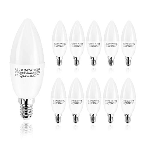 Aigostar Lampadina LED E14 C37 7W, Luce Bianca Calda 3000K 520 Lumen. Confezione da 5