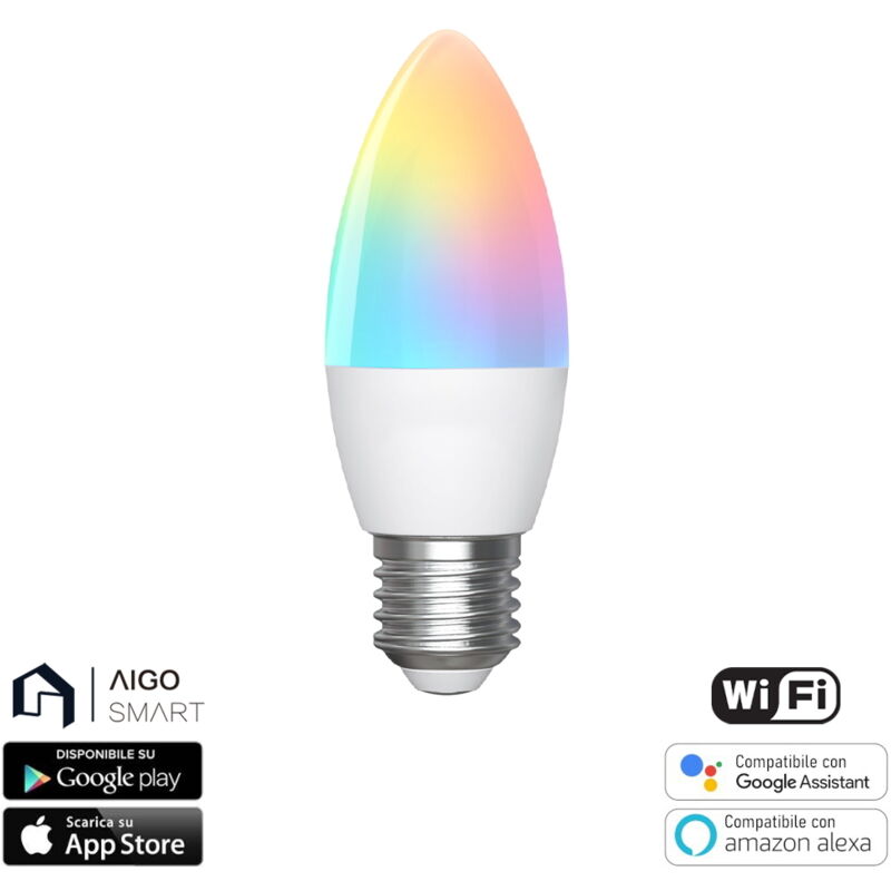 LAMPADINE LAMPADINA LED SMART WIFI E27 6.5 W RGB+3000K-6500K ALEXA GOOGLE HOME 2 PEZZI Tipologia:Lampadine smart Adattatori per lampadine:E27 Dimensioni:D37*H107mm Massima potenza:6.5W CCT:RGB+2700K-6500K Flusso luminoso:555lm Voltaggio:220-240V~ DF(DF):≥0.5 Modalità di configurazione Wi-Fi:WIFI + Bluetooth Intensità corrente:19mA Frequenza:50/60Hz CRI:Ra≥80 Angolo di illuminazione:250° Hg%:0 0 0 0 0 Consumo di energia per 1.000 ore:7kwh/1000h Equivalenza lampada incandescente:45W EEI:F Colore della luce:Da luce calda a luce diurna+RGB Colore:Bianco Modello:C35 Ambiente:Interno Temperatura:-20℃~40℃ Durata:25000h N. test interruttore:7500times Materiali principali:Plastica