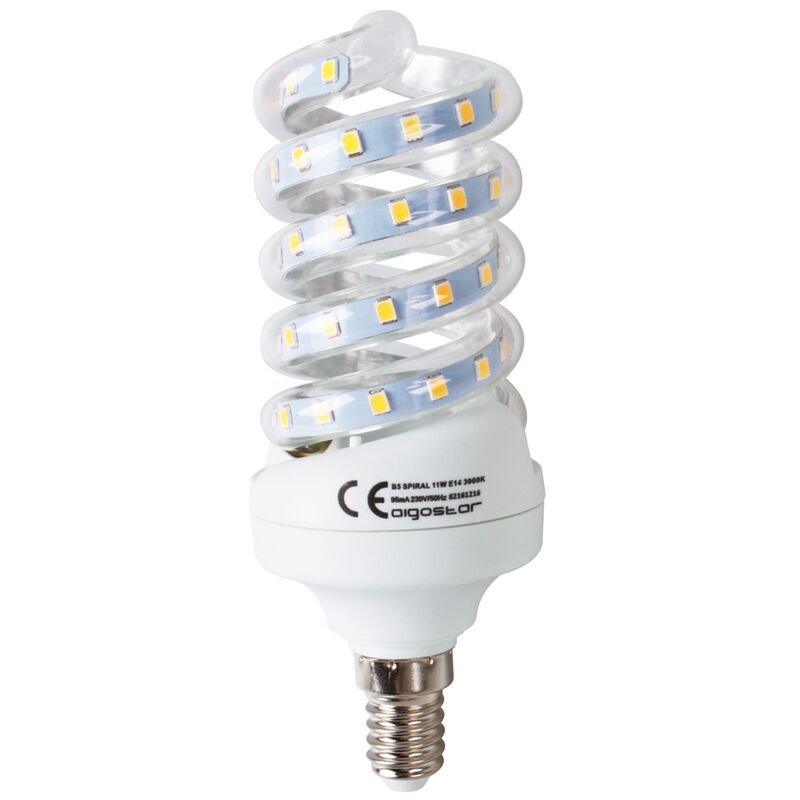 Lampadina Led a Spirale con Tubo trasparente Attacco E14 Potenza 11W Flusso luminoso 980lm Temperatura Colore 6400K Bianco Freddo angolo di apertura 360° - equivalente ad una tradizionale lampadina da 72W Tipologia: Spirale a Tubo Modello: Spirale E14 11W Attacco: E14 Dimensioni: 48x126 Temperatura colore: Bianco Freddo 6400K Potenza (watt): 11 Potenza equivalente (watt): 72W Flusso luminoso (lm): 980 Apertura in gradi: 360 Voltaggio: 220-240 Classe energetica: A+ Consumo energetico (kWh/1000h): 11 Durata vita (ore): 15000 Indice di resa cromatica (CRI): >,=80 Fattore di potenza (PF): >,0,5 mA: 83 Certificazioni: CE, ROHS Made in: PRC: Bianco Freddo: 9-11: 91-120: F