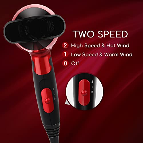 【Ottimo per il viaggio】 Mini asciugacapelli con doppia tensione, scelta perfetta per viaggiare in diversi paesi.Unico manico pieghevole, riduce al massimo il volume, compatta per il trasporto. Può essere facilmente inserito nella valigia o nello zaino e utilizzare sia a Casa o in albergo.