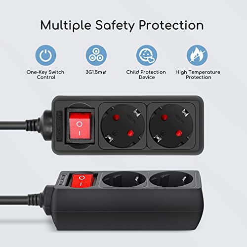 Aigostar Multipresa Ciabatta Elettrica con Interruttore,2 Posti Presa Schuko,Cavo 1.5 m,Multiprese con Protezione Bambini,Bianco