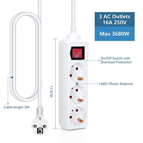 Aigostar Multipresa 3 Prese Elettriche Cavo da 3 Metri, Bianco