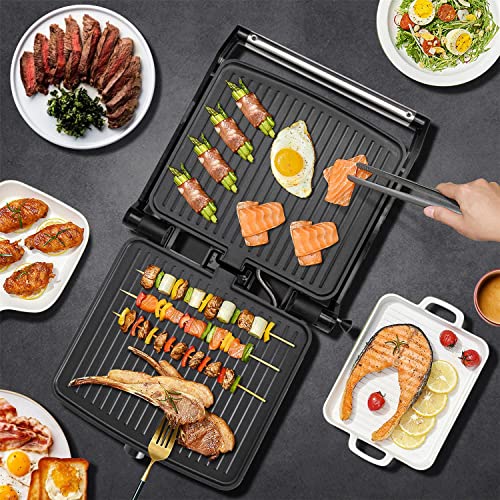 【2 piastre】Apertura a 180 °, è possibile ottenere due superfici di cottura di 280x230 mm antiaderente, e può cucinare diversi spessori cibo grazie al suo coperchio adattabile.