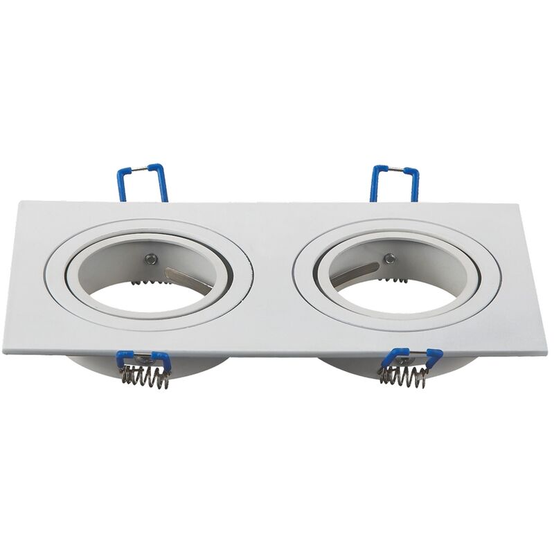 Questa è una cornice dalla forma rettangolare, pensata per essere installata nei controsoffitti questo modello è adatto per fori da 155x75 mm, nella quale puoi inserire due faretti GU10 oppure MR16.Essendo costruita in alluminio risulta leggera e resistente, con una buona durata nel tempo. Inoltre, grazie alla sua ottima conduttività termica ed elettrica è perfetto per l'uso con faretti che generano calore. È di colore bianco, quindi versatile, popolare ed estremamente facile da abbinare con molte palette di colore e stili di arredamento. Inoltre, le tinte chiare aiutano a riflettere la luce e a creare un ambiente luminoso e accogliente.Questo modello peraltro è orientabile, pertanto permette di regolare la direzione del fascio di luce per creare l'effetto desiderato.
