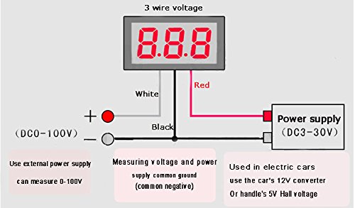 Aihasd 3PCS Mini 0.36 pollici DC 0-100V 3 fili digitale verde display a LED del pannello Tensione Meter voltmetro