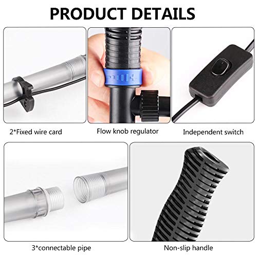 Facile da usare: la lunghezza dell'aspirapolvere automatico può essere regolata liberamente in base all'altezza dell'acquario. Dotato di interruttore indipendente e avviamento con un pulsante.