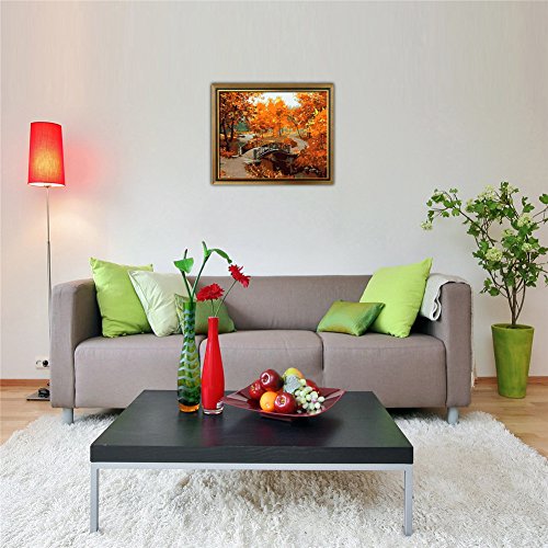 AIHOMETM kit fai-da-te per quadri ad olio a numeri senza cornice per adulti e bambini e principianti (motivo finestra con fiori) Autumn of Bridge