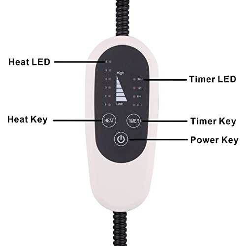 Controllo del tempo e della temperatura: cuscinetto riscaldante per cani e gatti con controllo digitale, 6 livelli di temperatura regolabili (30℃/86℉-55℃/131℉), 4 impostazioni di tempo (4/8/12/24H).