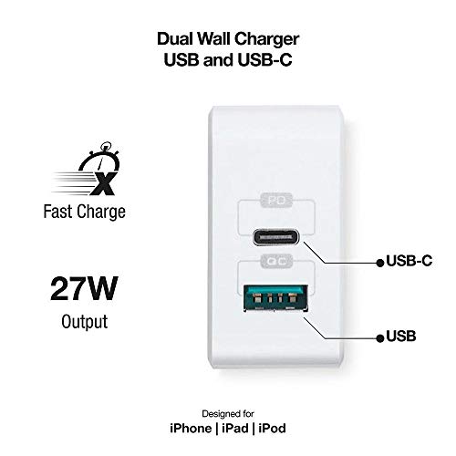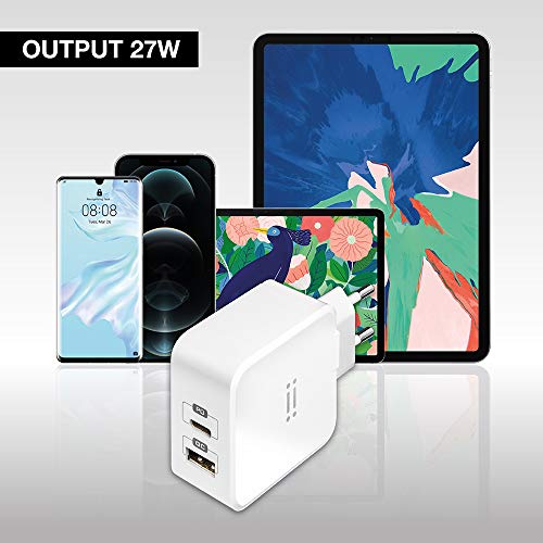 Aiino Alimentatore USB-C per iPhone da 27W, Fast Charger, 2 Porte USB Quick Charge 3.0 e USB Type C PD, per iPhone Serie 13/12/11/X/SE, iPad/iPad PRO, Bianco
