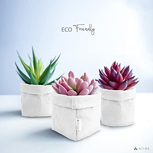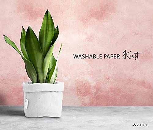 Aiire Set 3 Cestini Portaoggetti di Carta Kraft Ecologici - Vasi Moderni da Interno, Coprivaso per Piante da Interno - Organizer Bagno, Cucina e Dispensa - Vaso Bianco