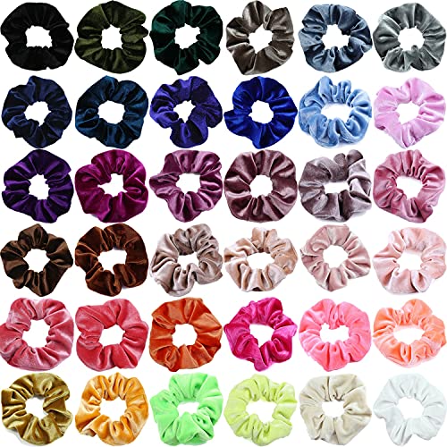 Aikeys 36 Pz Elastici Capelli Scrunchies Denso Velluto Fasce per Capelli Codini Accessori per Capelli Cravatte Bambina Multicolore Ragazza e Donna Grandi Regali per Halloween Ringraziamento e Natale
