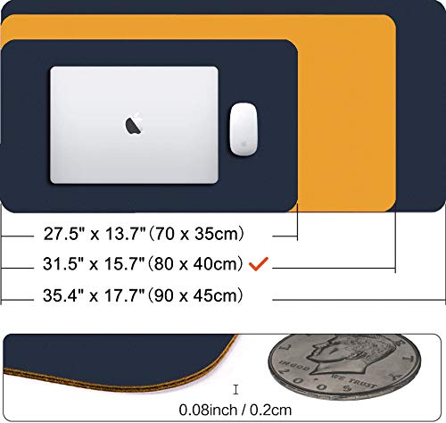 Aikeys Sottomano Scrivania Tappetino per Mouse Pad Grande in Pelle PU Bifacciale 80x40cm Tappetino da Scrivania per Ufficio/Casa Tappetino da Tavolo Sottomano da Ufficio Impermeabile Blu/giallo