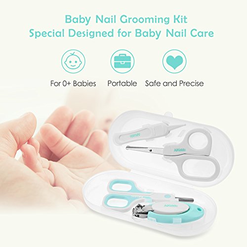 AiKiddo Forbicine Neonati Kit Manicure Neonato Tagliaunghie Neonato Set Neonato Igiene 4 Pezzi (Verde)