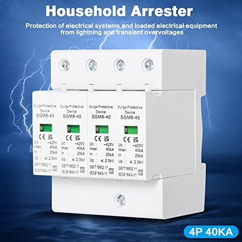 Ailao House Surge Protector, 4P 40KA House Surge Dispositivo di protezione da sovratensione su guida DIN per protezione da tuono(220V)