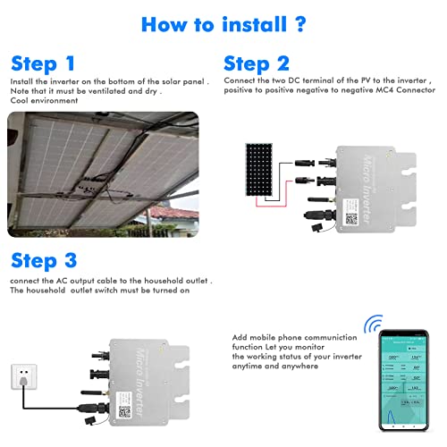 【Prestazioni elevate】Micro inverter: questo micro inverter utilizza la potenza di calcolo MPPT ad alta precisione per regolare automaticamente la potenza di uscita del pannello solare sul grande punto di uscita in tempo reale per realizzare lo scopo di uscita stabile e consentire al sistema di scaricare l'inverter collegato alla rete con alta Efficienza alla rete.