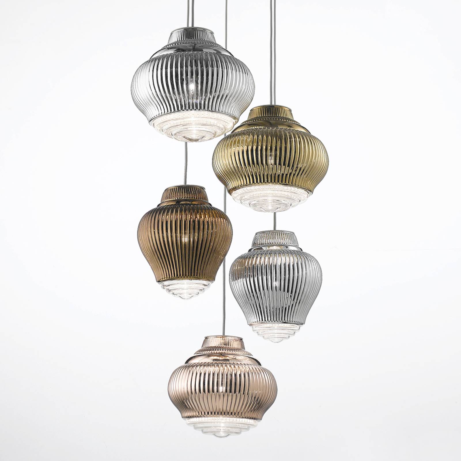 Ailati AILATI Lampada a sospensione Bonnie 130 cm oro rosè met., per soggiorno / sala da pranzo, vetro scanalato, E27, 70 W, altezza: 25 cm